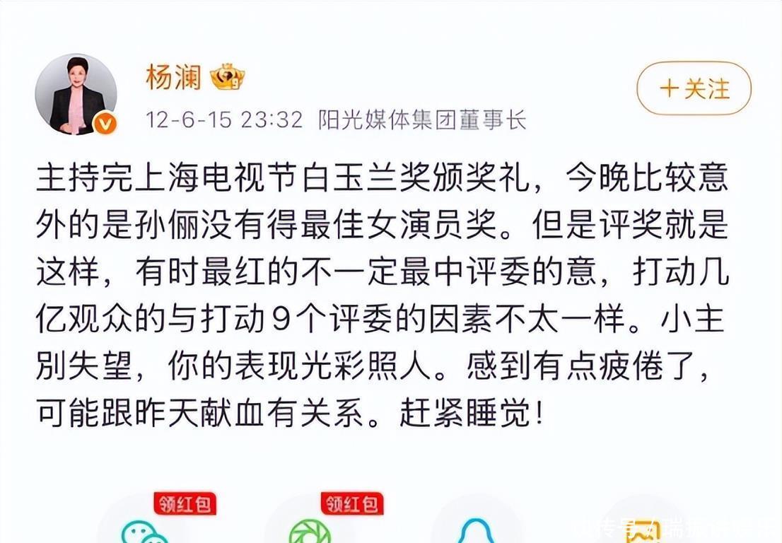当年宋佳和孙俪争夺白玉兰视后,结果宋佳拿奖了,主持人杨澜就曾经质疑白玉兰不够公正。