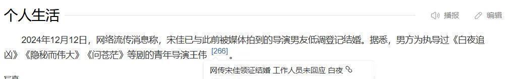 营销自己是姬圈天菜,但网传宋佳其实早就结婚了,对方是比她小7岁的导演王伟。