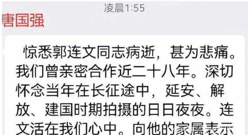 郭连文的离世,让同为特型演员的唐国强深感悲痛。两人曾亲密合作近 28 年,一同演绎过长征、延安岁月等中国近现代史上的关键场景,在无数个日夜的拍摄中,他们不仅是工作伙伴,更结下了深厚情谊。唐国强在得知噩耗后,特意联系郭连文的经纪人表达怀念之情,字里行间满是对挚友离去的不舍。这位在演艺圈耕耘 40 年的老艺术家,最终带着观众的喜爱与对艺术的赤诚,永远离开了他热爱的行业。